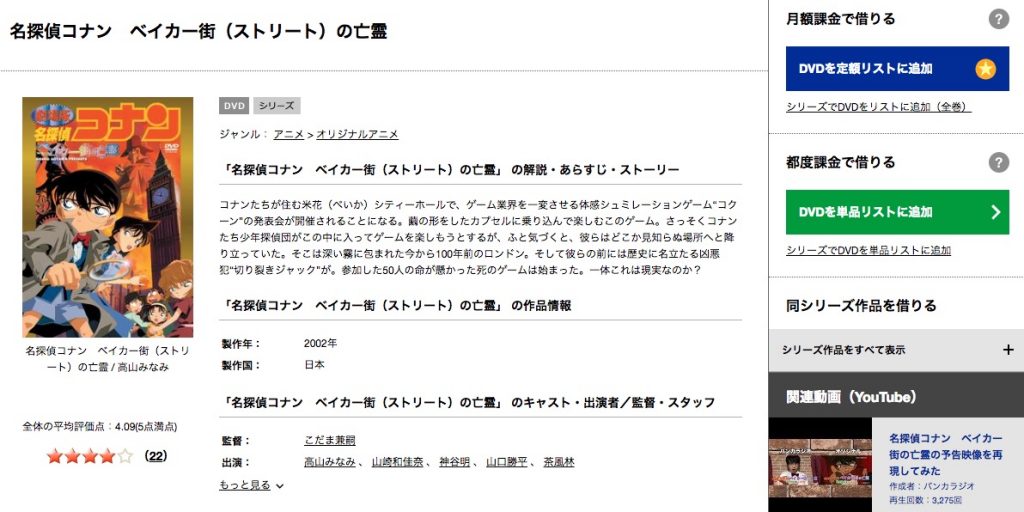 実際に、名探偵コナン映画「ベイカー街(ストリート)の亡霊」も、無事にレンタルできました☆