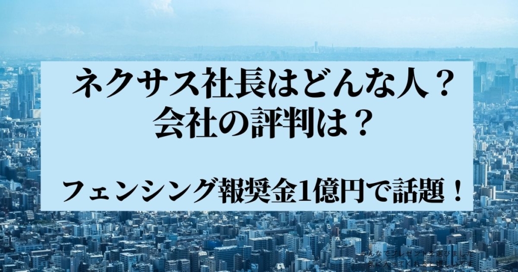 ネクサス社長はどんな人?会社の評判は?フェンシング報奨金1億円で話題