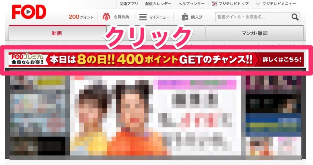 その1:毎月8のつく日にFODの画面にバナーが登場