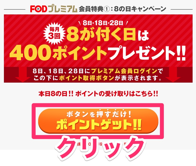 その1:毎月8のつく日にFODの画面にバナーが登場