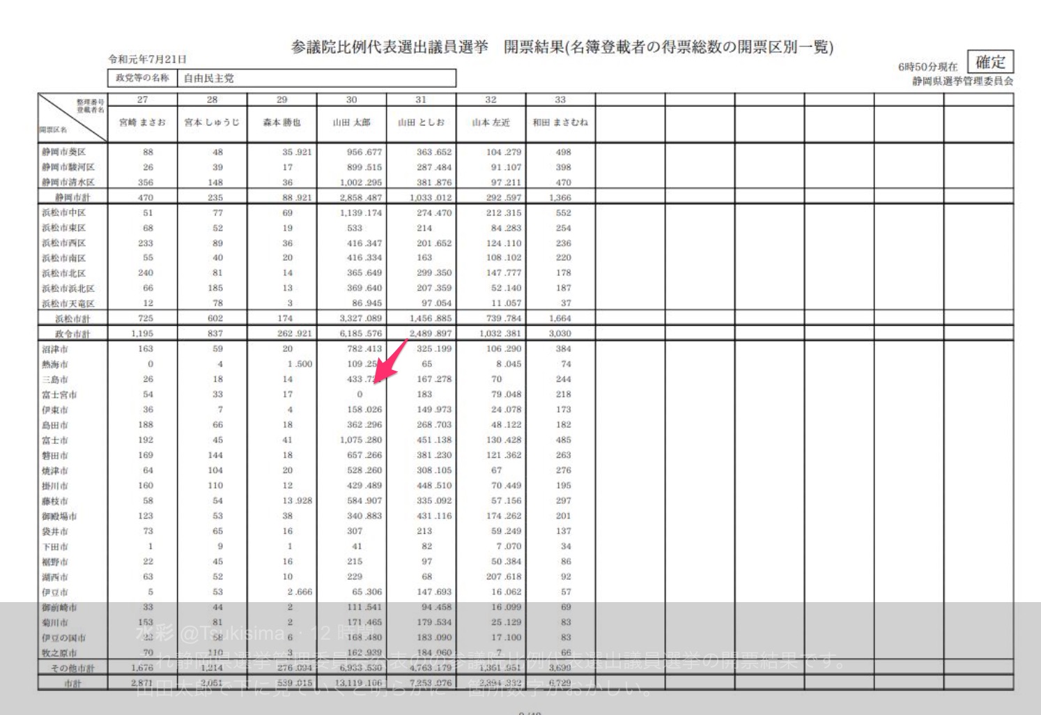 というわけで今回は、富士宮市/比例代表開票結果の山田太郎氏0票だった件についてまとめました。