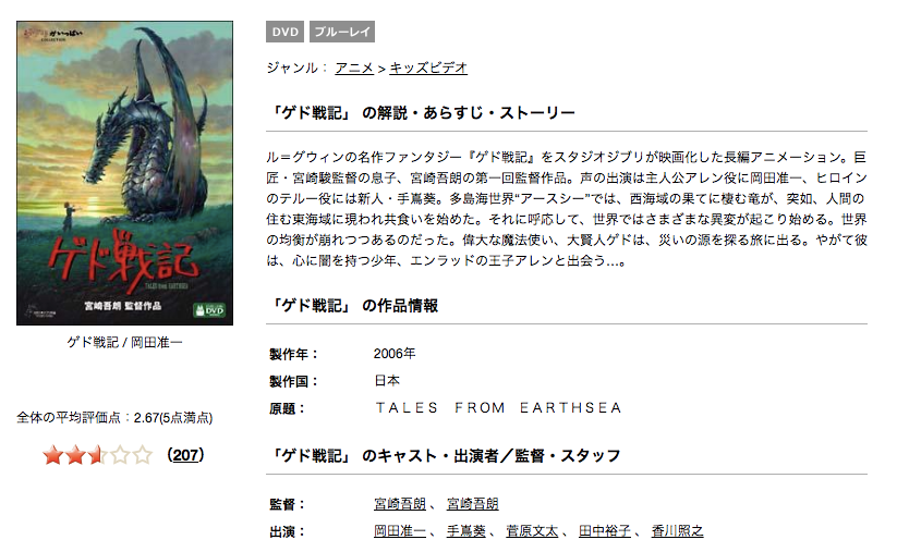 実際にTSUTAYAディスカスでゲド戦記を見てみた!