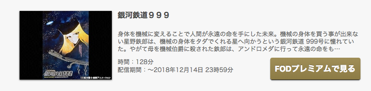 今すぐに銀河鉄道999を無料で見たい!という方は、今すぐにボタンをクリックしてFOD公式サイトへどうぞ。