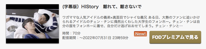 今すぐに【離れて離さないで(台湾)】を無料で見たい!という方は、今すぐにボタンをクリックしてFOD公式サイトへどうぞ。