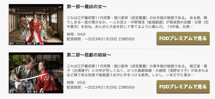 結論から言うと、【大奥2016】を無料で全話視聴するには、FOD(フジテレビオンデマンド)がおすすめです。