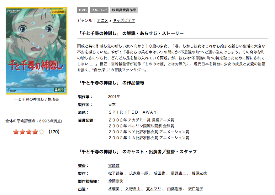 実際に千と千尋の神隠しも、無事にレンタルできました☆