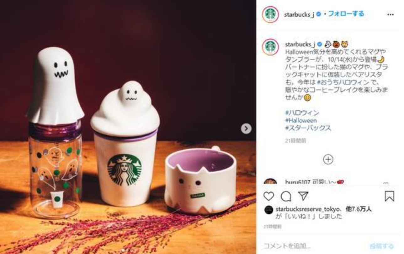 昨年2020年はラテの泡がおばけになったタンブラーなどが登場しました。猫シリーズも大人気ですよね!
