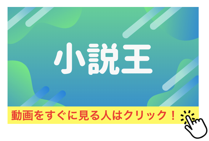 全話一気に【小説王】を見たい!という方には目から鱗な内容です☆今すぐに無料で動画が見れちゃいます。