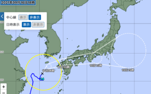 9月16日(木)までの進路予想では、福岡県にもっとも接近するのは、17日(金)午後、夕方から夜にかけてになりそうです。18日(土)には福岡県は抜けますが、16日の夜までには、家の外回りやベランダの物干し竿や植木鉢などは片付けておいた方がよさそうです。