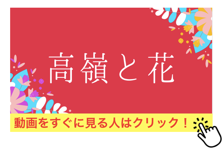 全話一気に【高嶺と花】を見たい!という方には目から鱗な内容です☆今すぐに無料で動画が見れちゃいます。