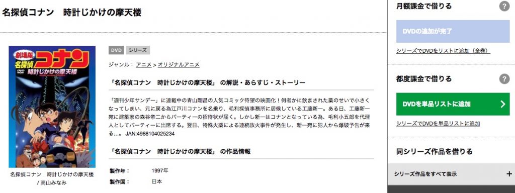 実際に、名探偵コナン映画「時計じかけの摩天楼」も、無事にレンタルできました☆