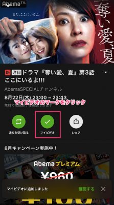 リアルタイムで見逃してしまった場合は、マイビデオに登録することでいつでも見逃し視聴ができます。ただし、マイビデオは